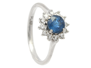 CARMOSÉRING, platina, safir ca 0,90 ct, 12 briljantslipae diamanter ca 0,24 ctv, ca W/VS, stl 15,75 mm, vikt 3,2 g.