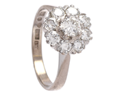 RING, 18K vitguld, 9 briljantslipade diamanter 1,00 ctv enligt gravyr, ca TW/VS, nagg på kuletter, stl 15,75 mm, Hans Strömdahl 1985, vikt 3,9 g.