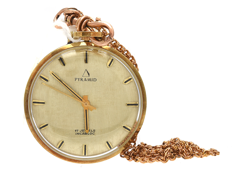 Fickur, Pyramid, 14K, med klockkedja Bismarck defekt 14K brv 25,5g