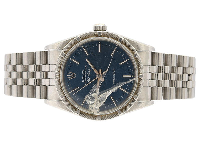 ROLEX, Oyster Perpetual, Air-King, Precision (T Swiss Made T), Ref nr. 14010, Serie nr. N277096, Cal 3000, Verk nr. 4531140, Boett nr. 14000, herrur, 34 mm, stål, automatisk, safirglas (skadat), Jubileelänk (till Air-King 14000), viklås, Ref nr. 62510H-O7/574 B, ca 1991.