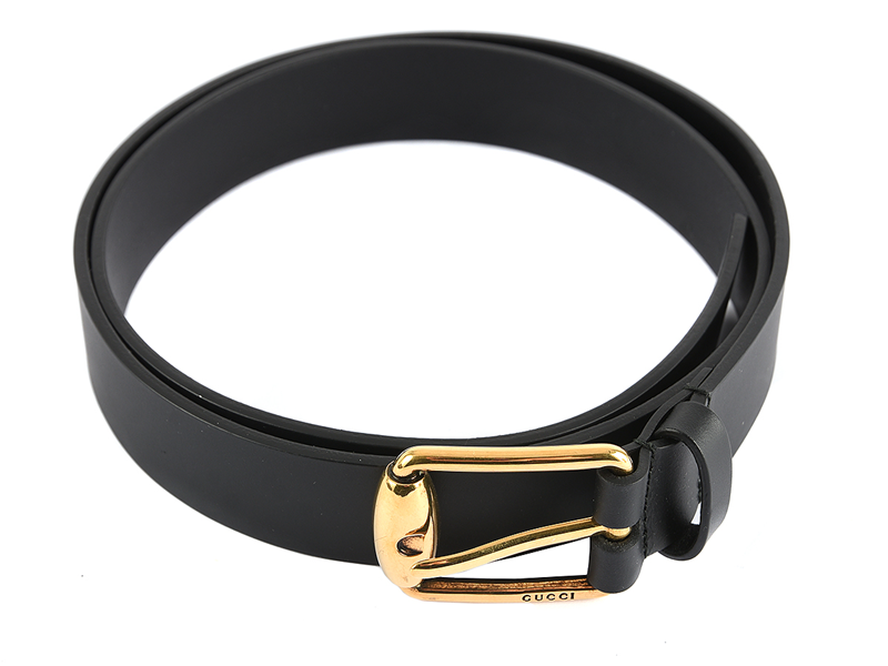 SKÄRP, GUCCI, svart läder, guldfärgat spänne, längd 90cm, bredd 3cm.