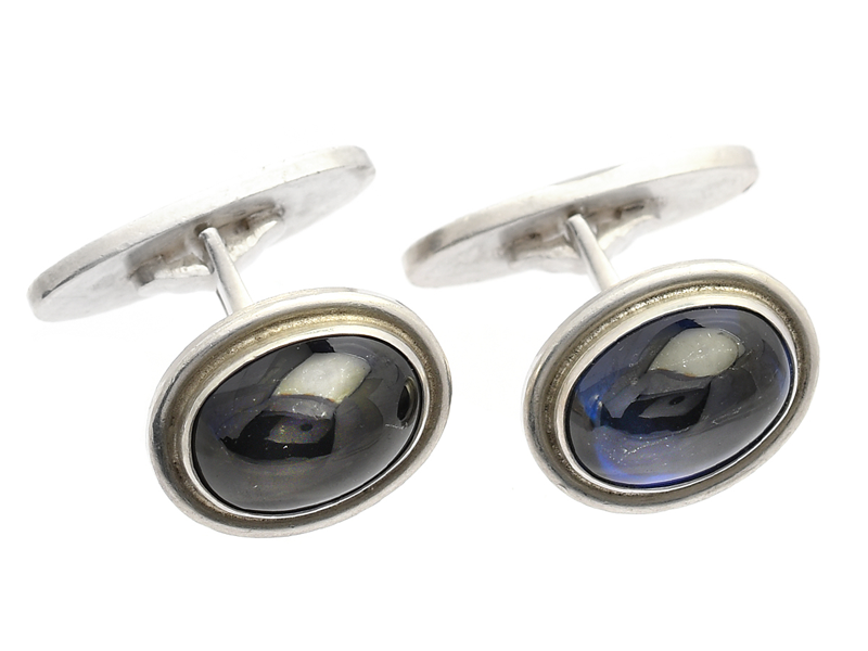 GEORG JENSEN, manschettknappar, nr 44B, sterlingsilver, syntetiska safirer, design Harald Nielsen, vikt 14,1 g.