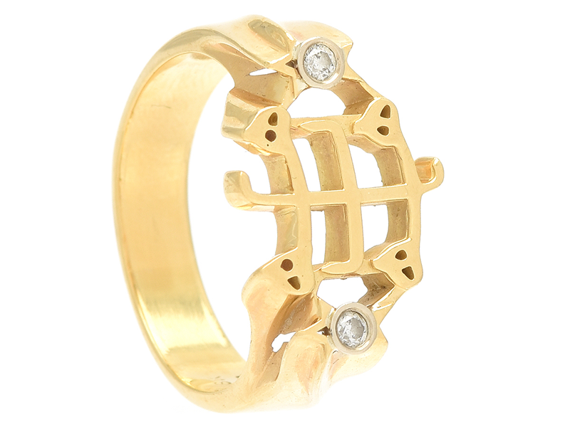 RING, 18K guld, 2 briljantslipade diamanter ca 0,08 ctv, ca W/SI, stl 19,5 mm, vikt 10,1 g.