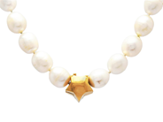 LÅS, 18K guld 8g, stjärna, för dobbar, pärlcollier, odlade sötvattenspärlor ca 13x15 mm, längd 40 cm.