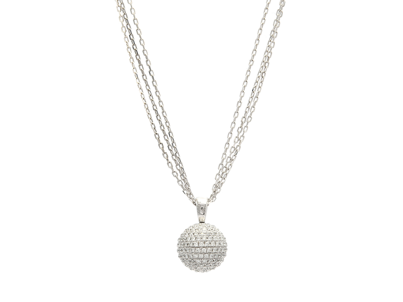 HÄNGE/KEDJA, 3-radig, 18K vitguld, 220 briljantslipade diamanter ca 1,00 ctv, ca TW-TCr(G-I)/VS-SI, längd 45,5 cm, vikt 7,6 g, några diamanter har nagg.