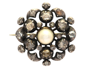 BROSCH, silver, odlad pärla ca 6 mm, 24 diamanter varav några är rosenslipade, vikt 7,2 g, diameter ca 25 mm.
