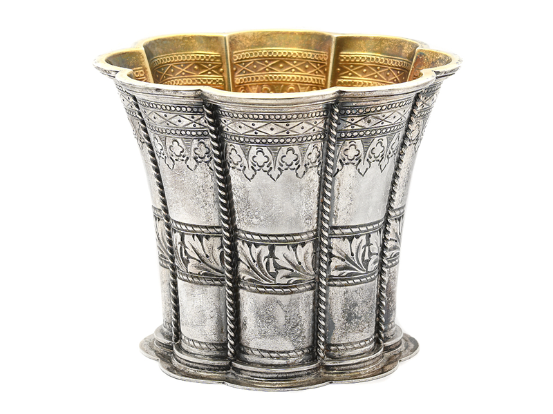 MARGARETABÄGARE, sterlingsilver, invändigt förgylld, Cort Hannibal, Köpenhamn 1927, höjd 9,5 cm, diameter 11,8 cm, vikt 322,8 g, gravyr.