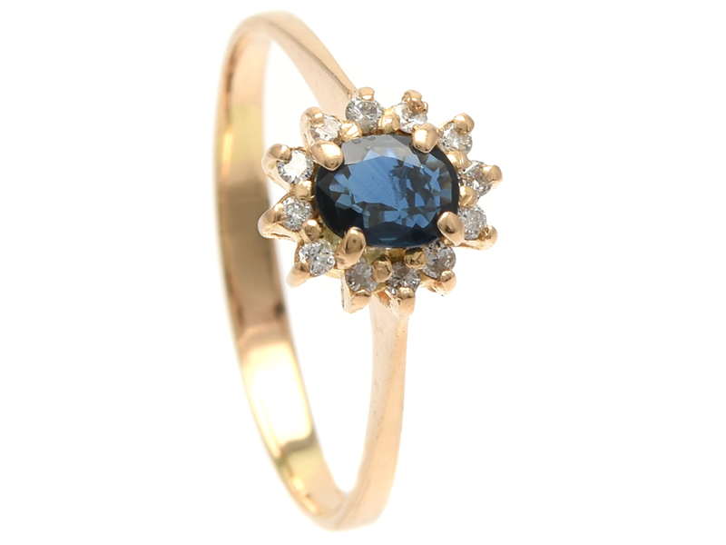 CARMOSÉRING, 18K guld, ovalslipad safir, briljantslipade diamanter ca 0,12 ctv, stl 18 mm, vikt 1,9 g.