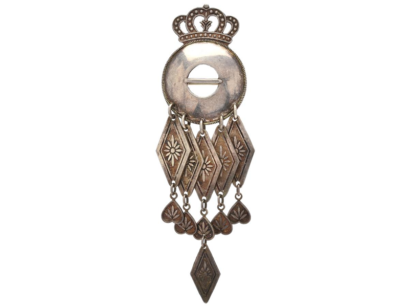 DRÄKTBROSCH, silver, mått 9,5 x 2,5 cm, Lagerströms Silver Aktiebolag, Mjölby 1955, vikt 14,3 g.
