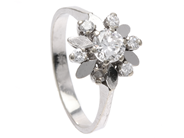 RING, 14K vitguld, briljatslipad diamant ca 0,45 ct, ca TW(G)/VS, 5 briljatslipade diamanter ca 0,17 ctv, ca TW-TCr(G-I)/VS-SI, stl 17,25 mm, vikt 2,7 g, en sten saknas, diamanterna har skador och nagg.