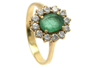 CARMOSÉRING, 18K guld, ovalsllipad smaragd, briljantslipade diamanter ca 0,50 ctv, ca W/VS, stl 16,75 mm, vikt 3,3 g, smaragder med nagg.