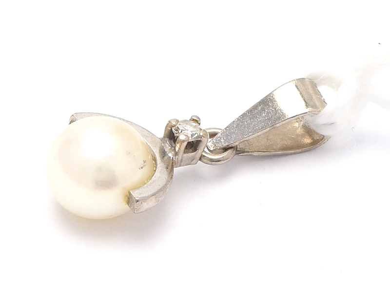 Hänge 18K vitguld brv 0,9g, med pärla (små skador) och diamant 1xca0,03ct