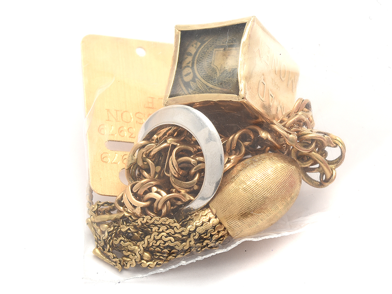Parti guld 18K 22,7g defekt, innehåller vitguld och gravyr