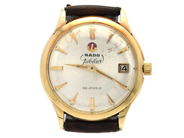 RADO, Jubilar, Cal AS 1701, Boett nr. 11699 / 535008, herrur, 35 mm, 14K guld, automatisk, plexiglas, datum, saknar sekundvisare, skadad urtavla, defekt, läderband, ca 1965.