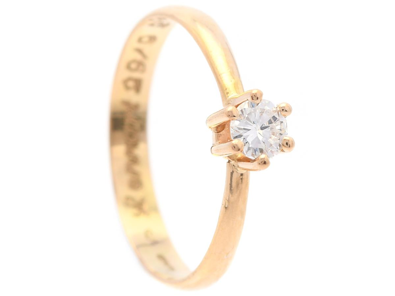 ENSTENSRING, 18K guld, briljantslipad diamant ca 0,20 ct, ca TW/VS, stl 17,5 mm, vikt 2,0 g, gravyr.