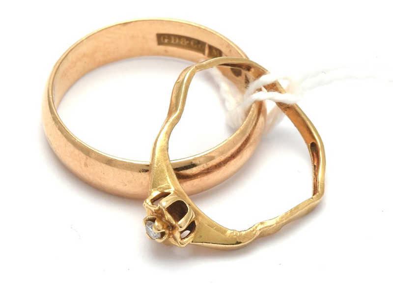 Ringar, 2st 18K brv 5,7g defekta, gravyr, vara 1 med 1 liten diamant