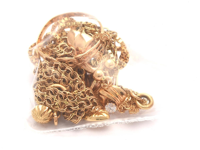 Parti guld 18K brv 13,4g defekt, innehåller sten