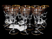Snapsglas 12st Duka, modell: Sergel, höjd: 11,5cm Ø5,5cm, guldfärgad och roséfärgad dekor