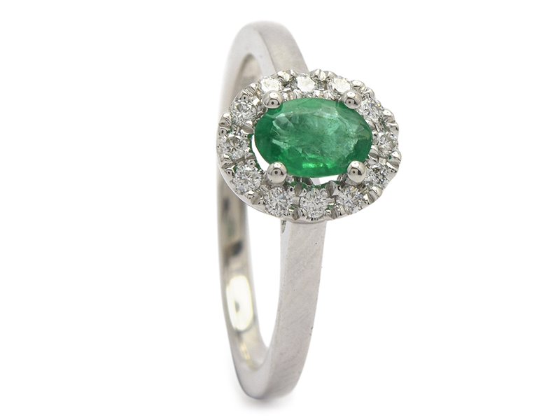 RING, 18K vitguld med smaragd 0,33 ct, 12 briljanter 0,14 ctv TW(G)/VS, storlek 16,25 mm , vikt 3,5 g