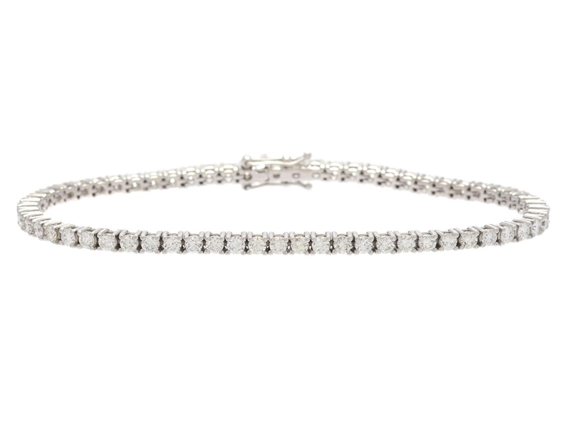 TENNISARMBAND, 18K vitguld, 63 briljantslipade diamanter ca 3,51 ctv, ca TW-TCr/SI-P, längd 18 cm, vikt 11 g.