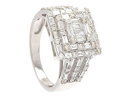 RING, 18K vitguld, baguetteslipade diamanter ca 0,84 ctv, briljantslipade diamanter ca 0,47 ctv, ca TW-Ca/VS, stl 17,25 mm, vikt 5,8 g, en diamant är skadad.
