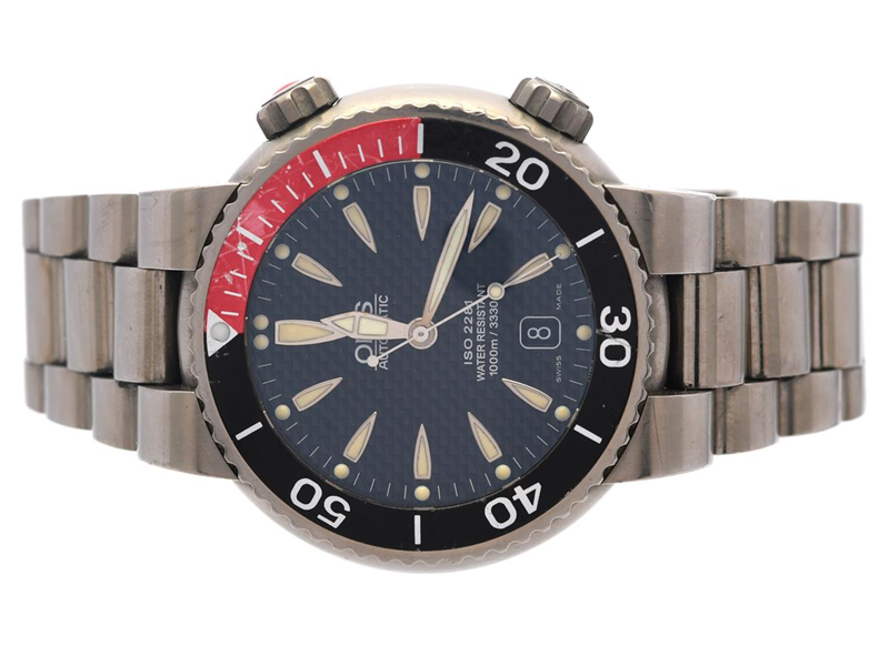 ORIS, TT1 Diver (1000m/3330ft), Cal 633 (ETA 2824-2), Serie nr. 25-54079, Ref nr., Boett nr. 633-7541, herrur, 44 mm, titan, automatisk, safirglas, datum, heliumventil, integrerad originallänk, viklås, Ref nr. 8 24 70 EB, cert, oktober 2004, box, ytterkartong.