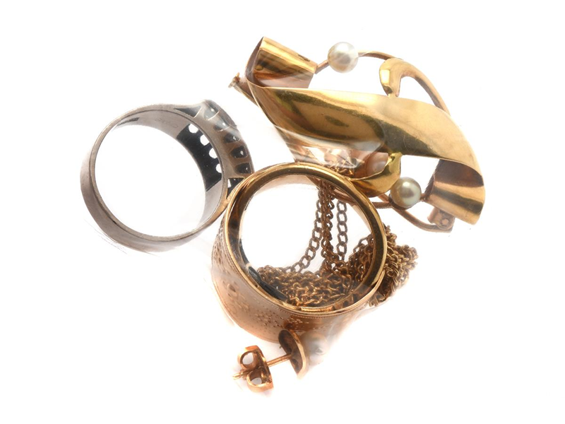 Parti guld skadat 18K 21,5g med pärlor och små diamanter