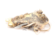 Cyma, Ø19mm, damur, 18K, 18K i bismarcklänkar, brv: 22,8g 17cm, plastglas, skadad urtavla, saknar bakboett, manuell, går ej