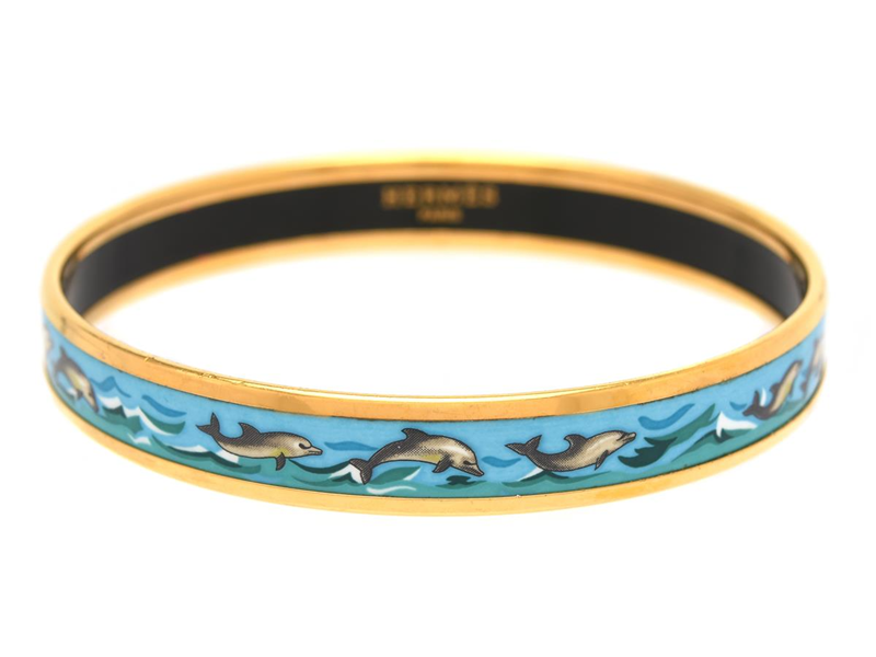 HERMÈS, ARMRING, Dolphine Bangle PM, turkos emalj, guldfärgad ring, 6,5 cm i diamater. Good condition.