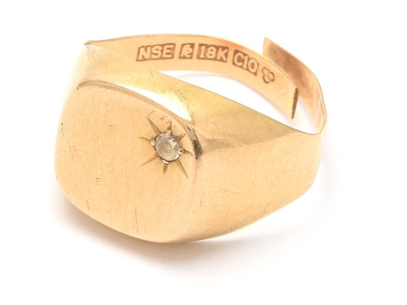 Klackring 18K 4,1g med vit sten, avklippt skena, repig