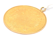 Hänge 18K/23K 15,4g 46x41mm inkl. ögla, myntliknande föremål Frang Ios I D G Avstriae Imperator 1915, fattning i 18K