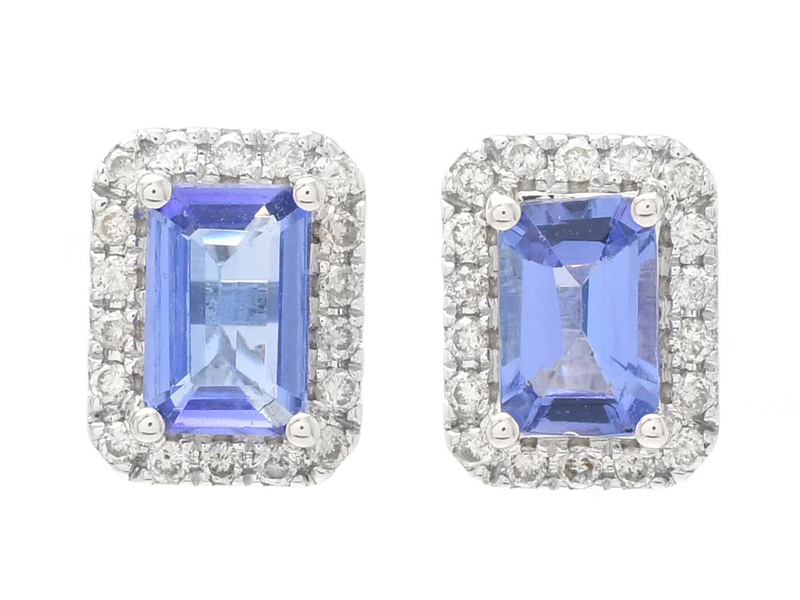 ÖRHÄNGEN, 18K vitguld, smaragdslipade tanzaniter ca 1,06 ctv, briljantslipaed diamanter ca 0,19 ctv, stift, höjd 8,5 mm, vikt 1,8 g.