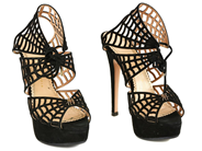 SKOR, CHARLOTTE OLYMPIA, Cautht in Chatlottes Web, svart mocka, stl 37, klack 15cm, platå 3cm, kartong.