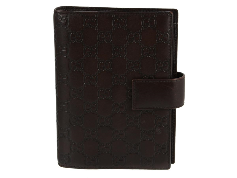 AGENDA, GUCCI, Guccissima, mörkbrunt skinn med monogram, 18x14cm, dustbag,