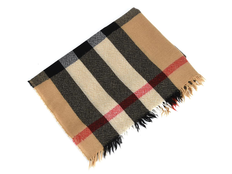 HALSDUK, BURBERRY, ull, siden, 190x45cm, beige, svart rutig.