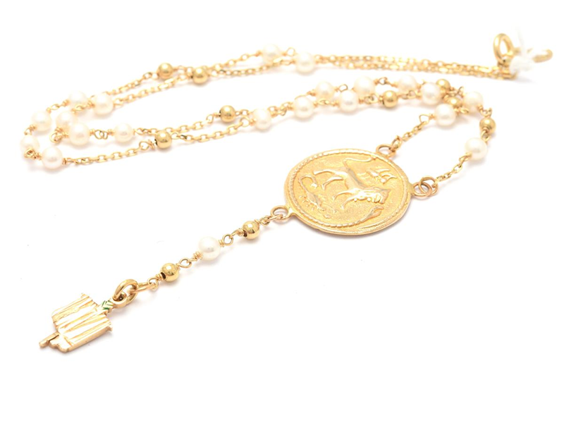 Collier 18K 11,2g, 43cm med odlade pärlor och integrerat hänge
