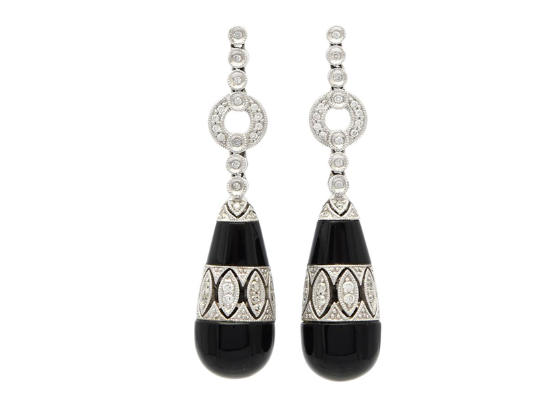 ÖRHÄNGEN, 18K vitguld, briljanter ca 0,36 ctv, ca TW-TCa/SI-P, onyx, höjd 42 mm, vikt 10,1 g