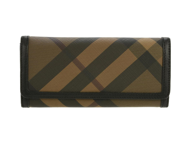PLÅNBOK, BURBERRY, canvas, mörkt rutig, svart läder, 19x9 cm, mynt, kort, sedel.