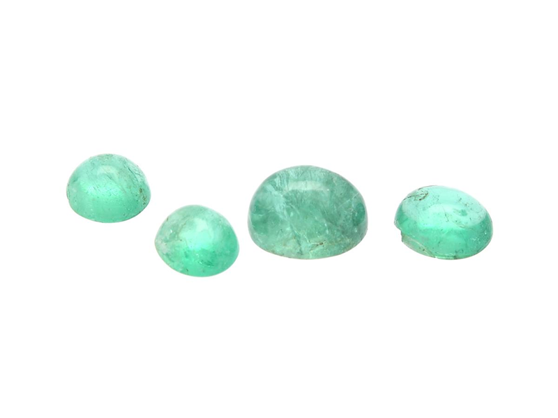 4 SMARAGDER, cabochonslipade, 4,39 ctv, nagg och inneslutningar når ytan.