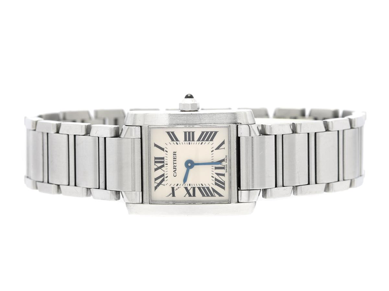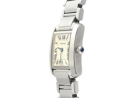 CARTIER, Tank Francaise, Cal 057, Ref nr. W51008Q3, Boett nr. 572898LX / 2384, damur, 20,3 x 18 (25,35) mm, stål, quartz, safirglas, originallänk, viklås, Ref nr. CCLH, servad september 2019, cert (ej komplett), ca mars 2007, box.