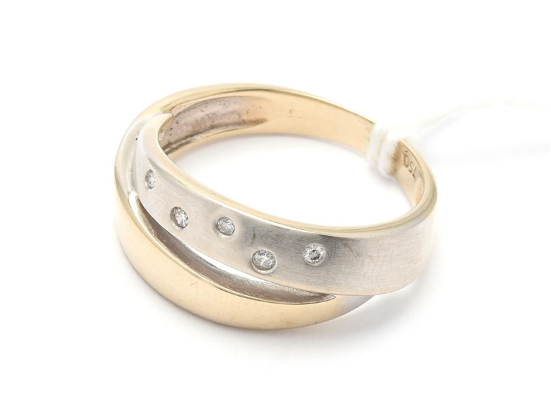 Ring 18K tvåfärgad 5,0g Ø17¼ med diamanter 5xca0,01ct