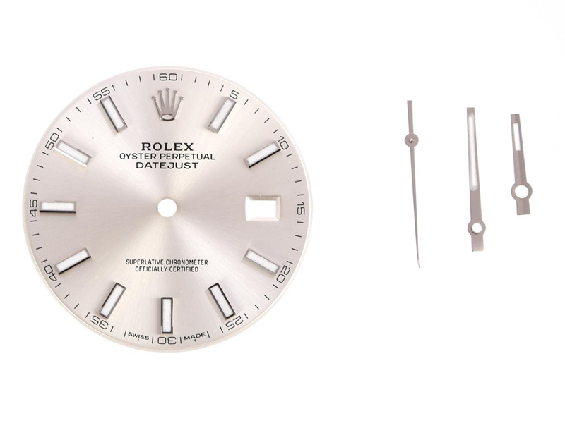 URTAVLA, till Rolex Oyster Perpetual Datejust, herrur, silver/index, skadad (9/10), passar till sexsiffrig referens (126334), inklusive visare.