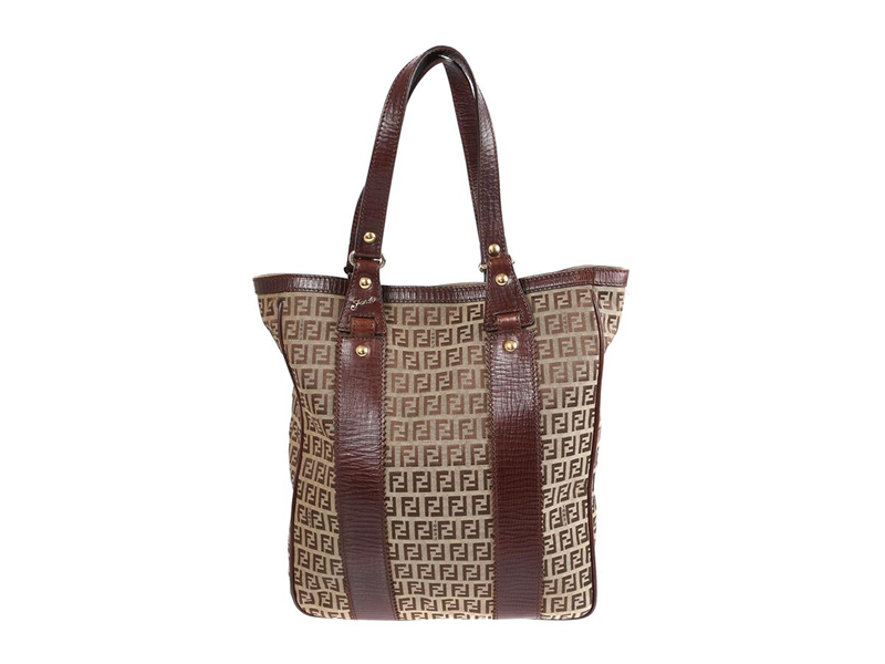 VÄSKA, FENDI, Zucchino Tote, beige/brun zucca canvas, brunt läder, guldfärgade beslag, 29x33x10 cm.