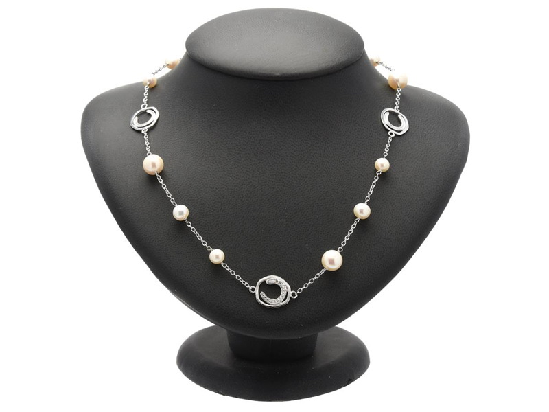 COLLIER, sterlingsilver, odlade sötvattenspärlor, strass, längd 44 cm, vikt 12,1 g.
