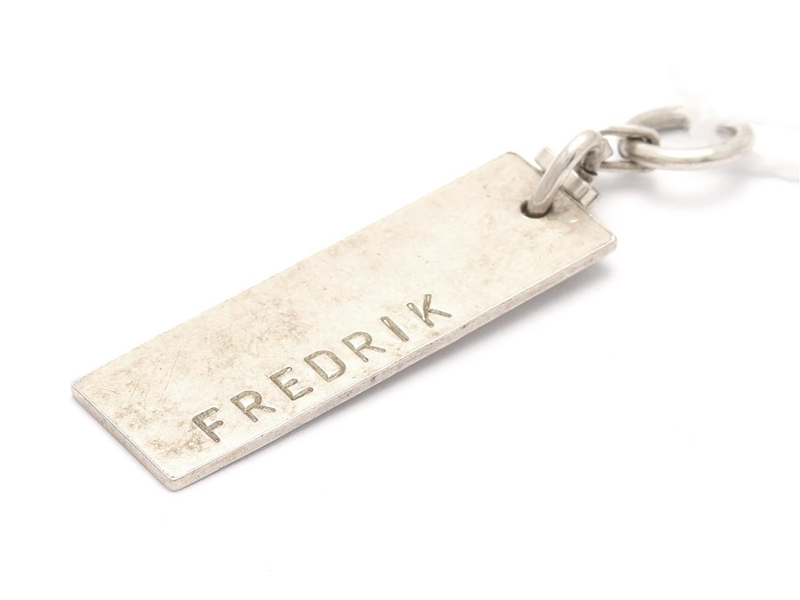 Hänge S925 3,9g Höjd: ca50mm, med text "Fredrik"
