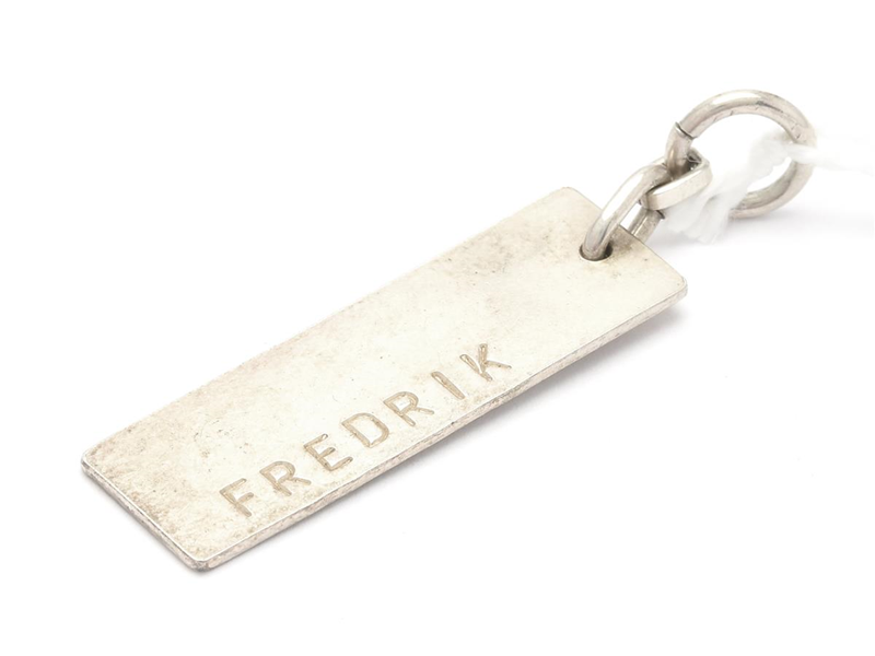 Hänge S925 3,5g Höjd: ca50mm, med text "Fredrik"