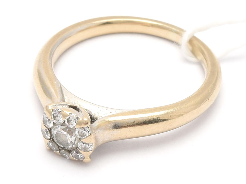 Ring 18K vitguld 4,3g Ø16¼, med diamanter 1xca0,16ct + 9xca0,02ct, skadad rodiering