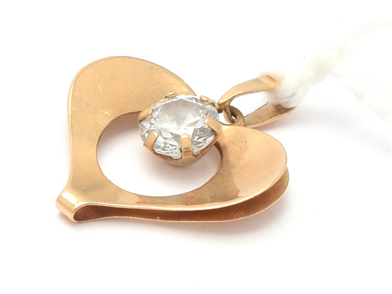 Hänge 18K 0,9g, höjd: 18mm, bredd: 16mm, med vit sten, något bucklig