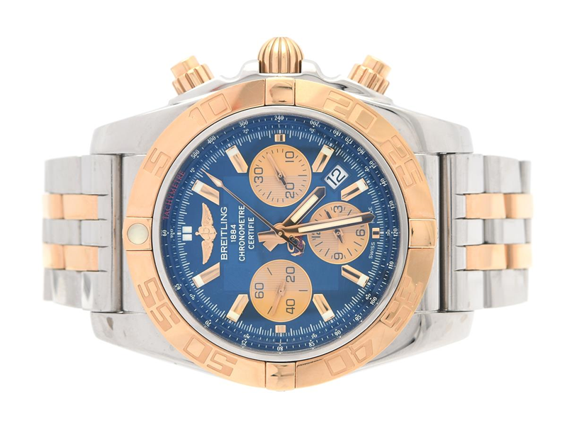 Breitling Chronomat 44 refnr CB0110 s/n 3303297 automat pilotlänk stål/rosé, extra länkbitar datum safirglas manual cet box