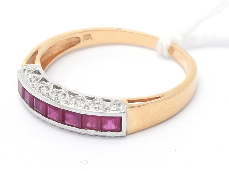 Ring tvåfärgad 18K 3,0g Ø19, med diamanter 14xca0,005ct, röda stenar